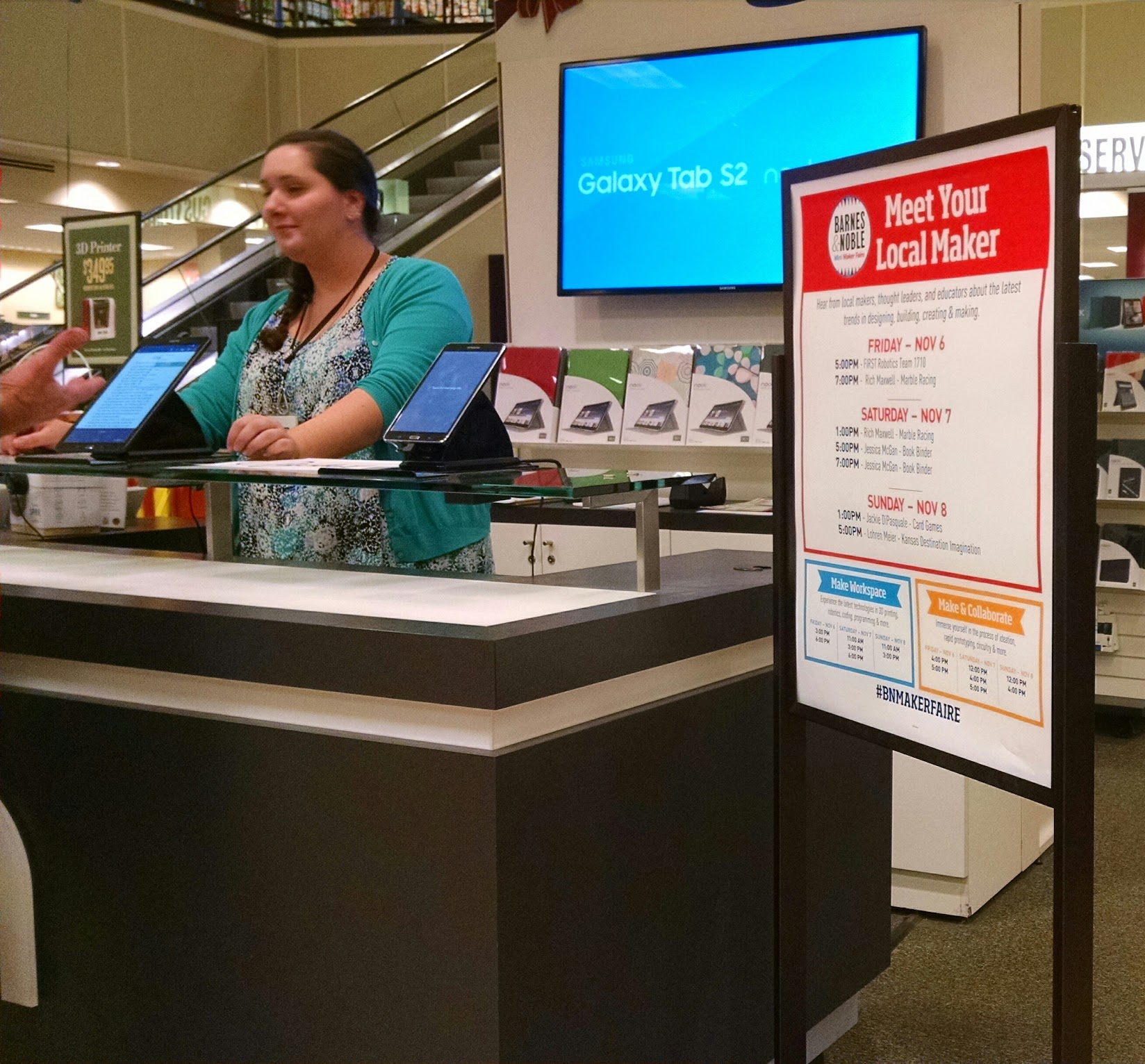 Exactly 5 years ago, Greater Kansas City 2600 moved our meeting location to the coffee shop inside Barnes & Noble Booksellers due to loud music and television sets adding to the noise and distraction of the food court at Oak Park Mall. The venue has been great. Tonight, it was extra-special, as B&N has partnered with Make: to host Mini Maker Faires, apparently in all of their stores this weekend. This was quite a surprise to us, as all of a sudden, a "these are our people" moment was upon us.